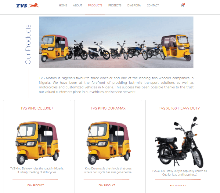 TVS Nigeria launched a new website mid-year in 2021. The goal was to make it easy for users to find more information about products and shop online with ease.